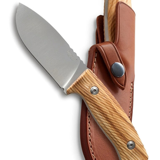 LionSteel M3 - סכין קבועה עם ידית מעץ זית ונרתיק עור M3 UL