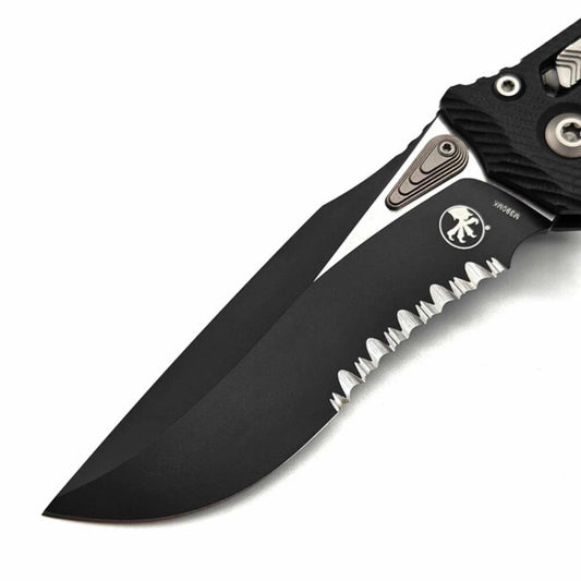 Microtech MSI® S/E Tri-Grip Injection Molded Black Stonewash Full Serr (210T-12PMBK)