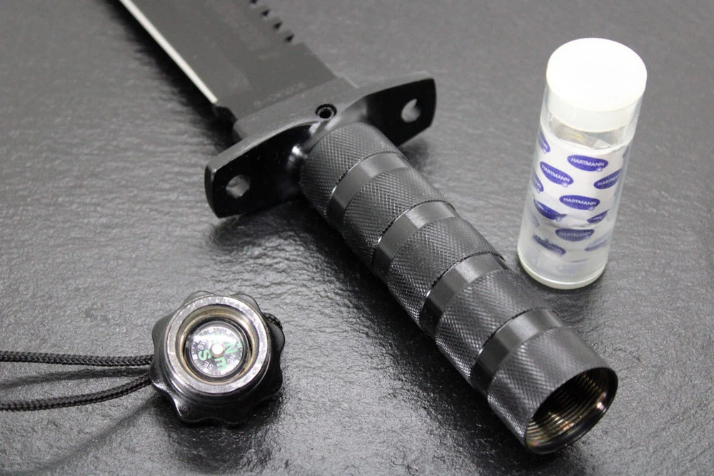 הנרתיק והידית כוללים את אביזרי ההישרדות הבאים: