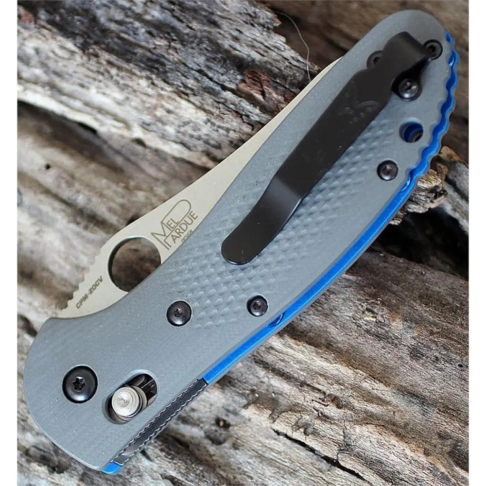 שינוי מחבר של הדגם הפופולרי Benchmade Griptillian על ידי המעצב Mel Pardue. להב הסכין Benchmade 550-1 Pardue עשוי מפלדת אל-חלד CPM-20CV מוצקה בצורת Sheepsfoot, עם קצה מחודד חלק וקו אחורי חלק. קצה החיתוך הארוך עם קצה מחוזק חותך מצוין, שומר על חידוד לאורך זמן ומונע קורוזיה של מתכות. הסכין נפתחת בנוחות ביד אחת, הודות לחור פתיחה דרך הממוקם בקצה.