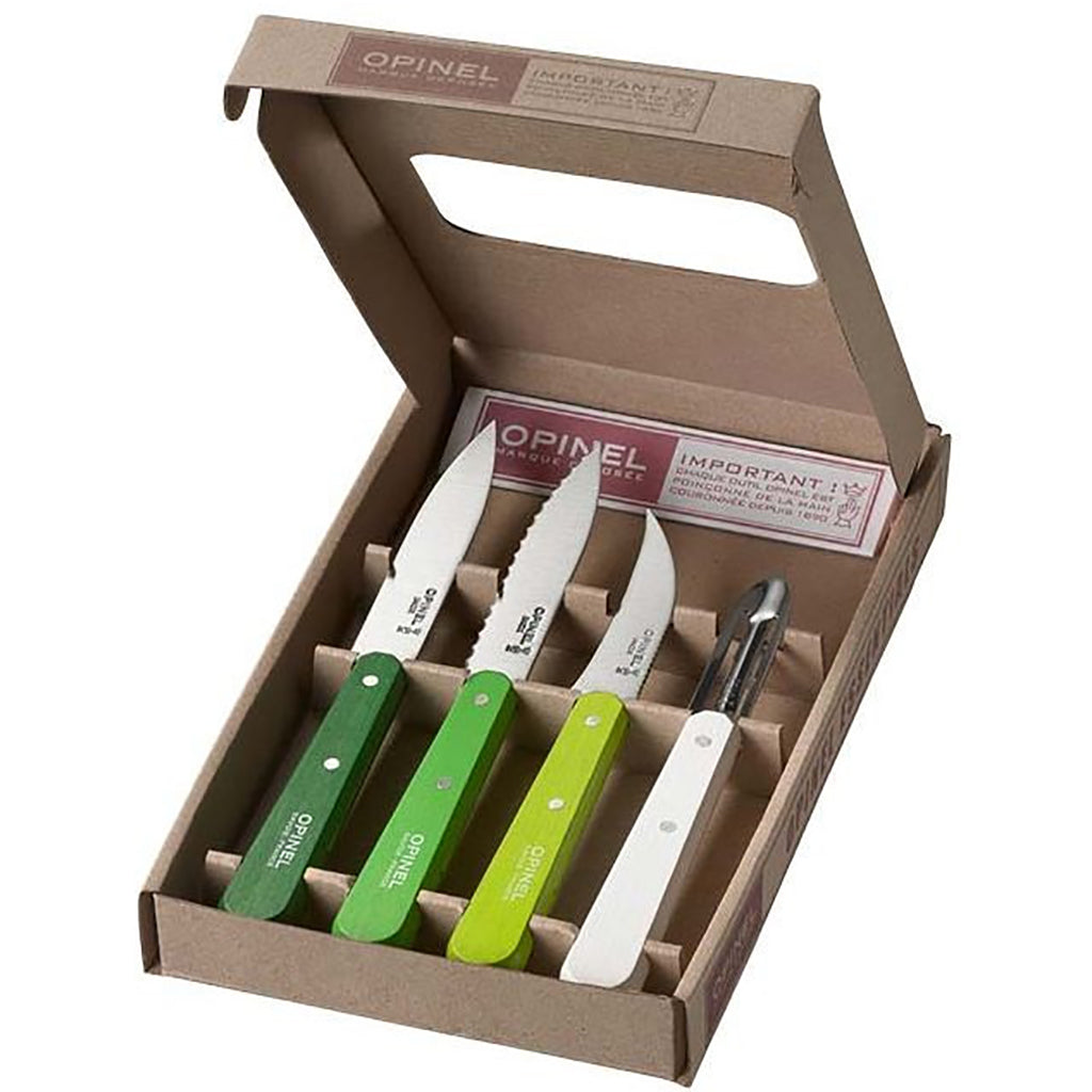 סט סכיני המטבח מבית Opinel המתנה המושלמת לכל טבח ביתי. הסט כולל שלושה סכינים, סכין קילוף, סכין משוננת, סכין ירקות וקולפן נייח. הסכינים הקטנות רב-תכליתיות עם ידית מעץ ליבנה בצבעים שונים, המיוצרות כולן באירופה מחומרים איכותיים, יהפכו במהרה לסכינים האהובים עלכים!