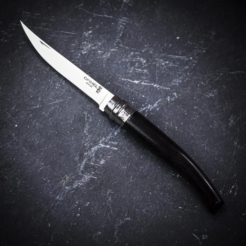 סדרת ה-Slim (המכונה Effilés בצרפתית) אלגנטית וארגונומית במיוחד. ה-No.12 מתאים לסכיני שולחן נהדרים בעוד ה-No.15 משמש לפילה דגים. לכל הסכינים הדקות יש להב גמיש וצר, הקטנים מעולים לחיתוך פירות וירקות והגדולים יותר להכנת דג פילה. אנא זכור כי לסכיני ה-Slim יש להב מעט גמיש ואינם מיועדים לשימוש עבור מרקמים קשיחים.