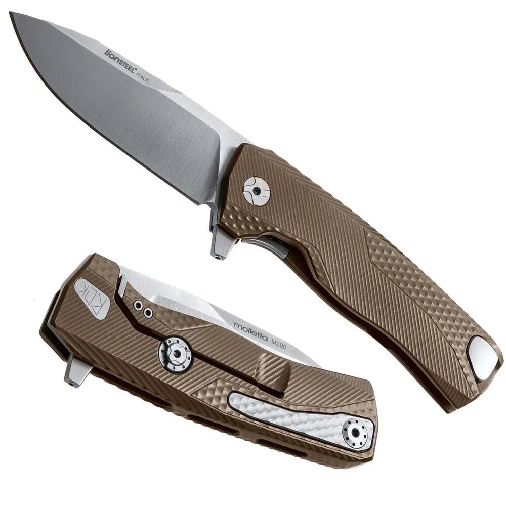 lionSTEEL ROK Titanium | ידית ברונזה | להב M390 בגימור סאטן