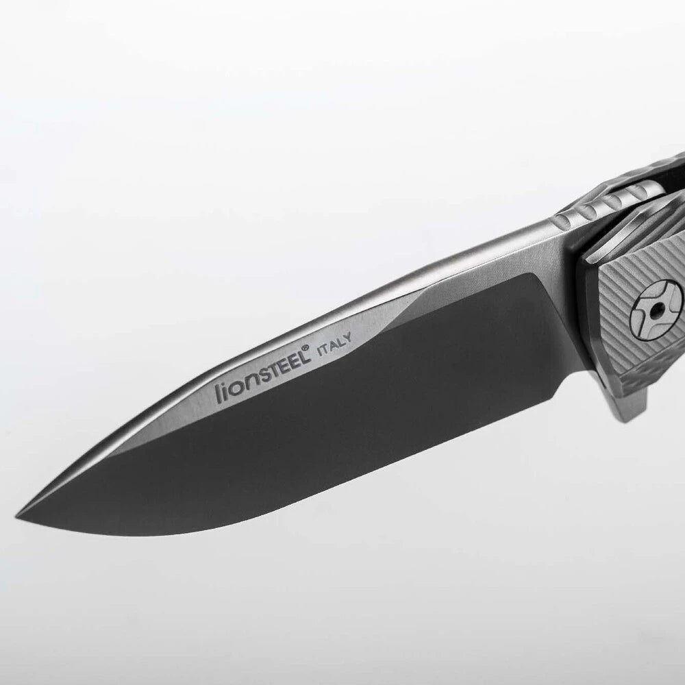 lionSTEEL ROK Titanium | ידית אפורה | להב M390 בגימור סאטן