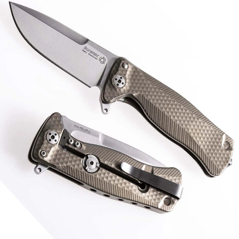 LionSteel SR22 - סכין מתקפלת מיני, להב סאטן, ידית ברונזה טיטניום SR22 B