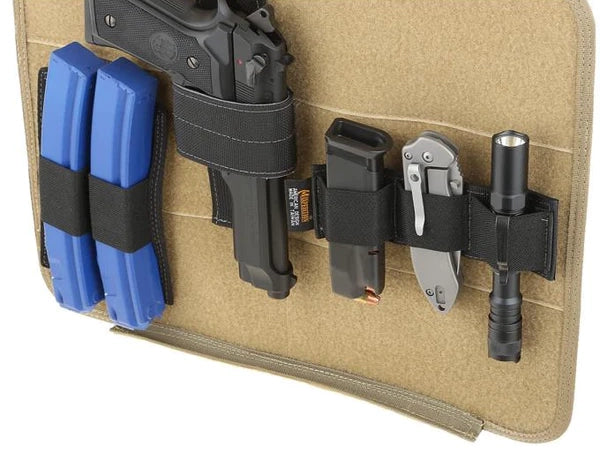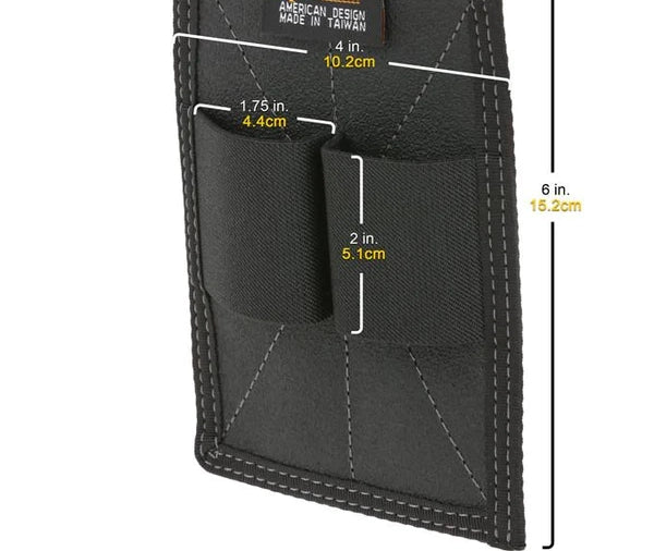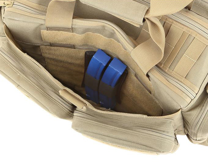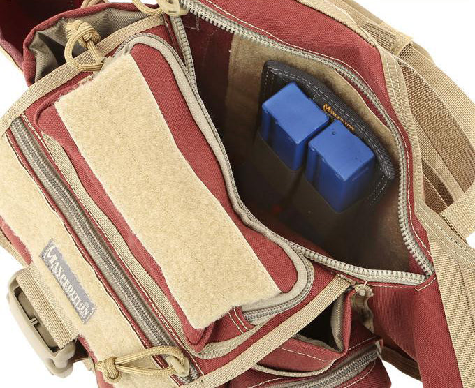 תוסף אחיזת מחסניות כפולה מתחבר לשדה הלולאה הנמצא בתא CCW במגוון תיקים של Maxpedition. שתי לולאות אחיזה אלסטיות ברוחב 2" כל אחת מחזיקות עד שתי מחסניות .45 חד-שכבתיות או מחסנית עם שכבות כפולות. הלולאות מתפקדות היטב גם עם כלים רב-תכליתיים, פנסים, אלות, תרסיס פלפל וכו'.