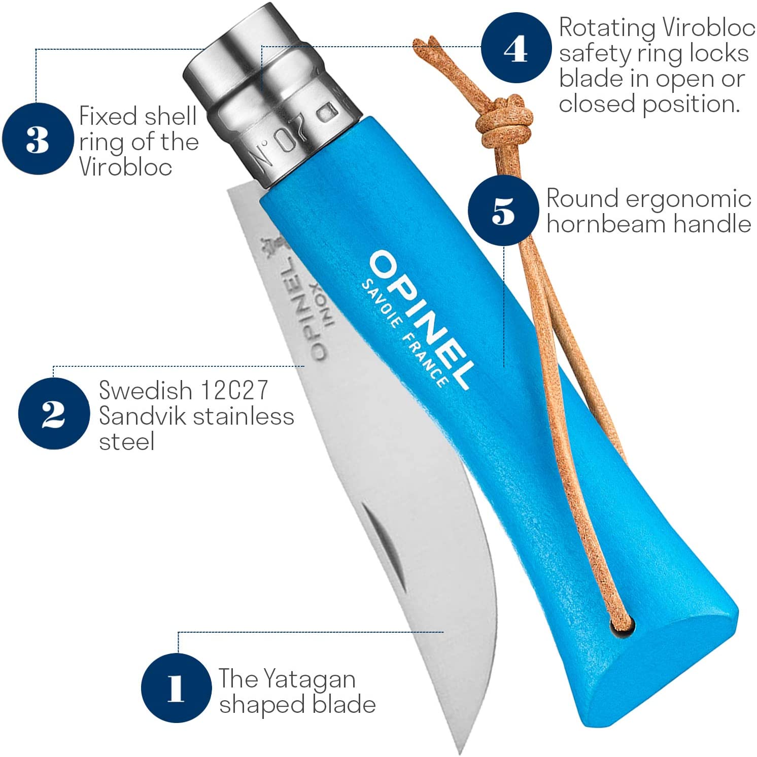 Opinel מספר 07 מגיע בצבעים יחודיים, הגודל של מס' 07 מסווג את הסכין הזה כלא קטן או גדול, אלא בדיוק הגודל המושלם! הלהב עוצב ושוכלל במשך דורות כדי למקסם את איכות החיתוך ולהבטיח השחזה קלה לאחר שנים של עבודה קשה. השתמש בו בגינה, ליד שולחן האוכל, או אפילו בהרפתקה הבאה שלך. שמור את הסכין בכיס, בתיק או בארגז הכלים ואנו בטוחים שתאהב אותו במשך שנים רבות.